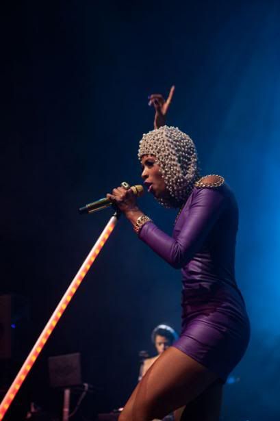 here is my beloved kelis at a show in london. how crazy is that head piece? i love how off the wall pop stars have gotten. it just makes pop music so much more fun for me!